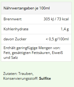 (Alk. 12,5 % vol. , Zucker 4,3 g/l , Säure 4,7 g/l , enthält Sulfite)